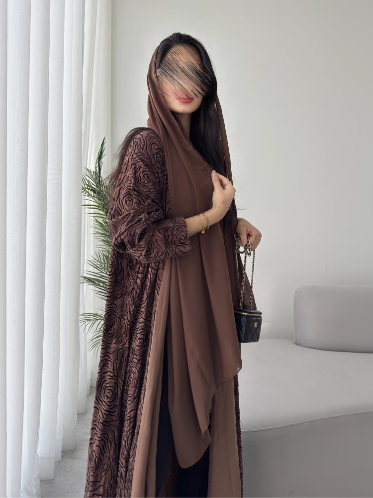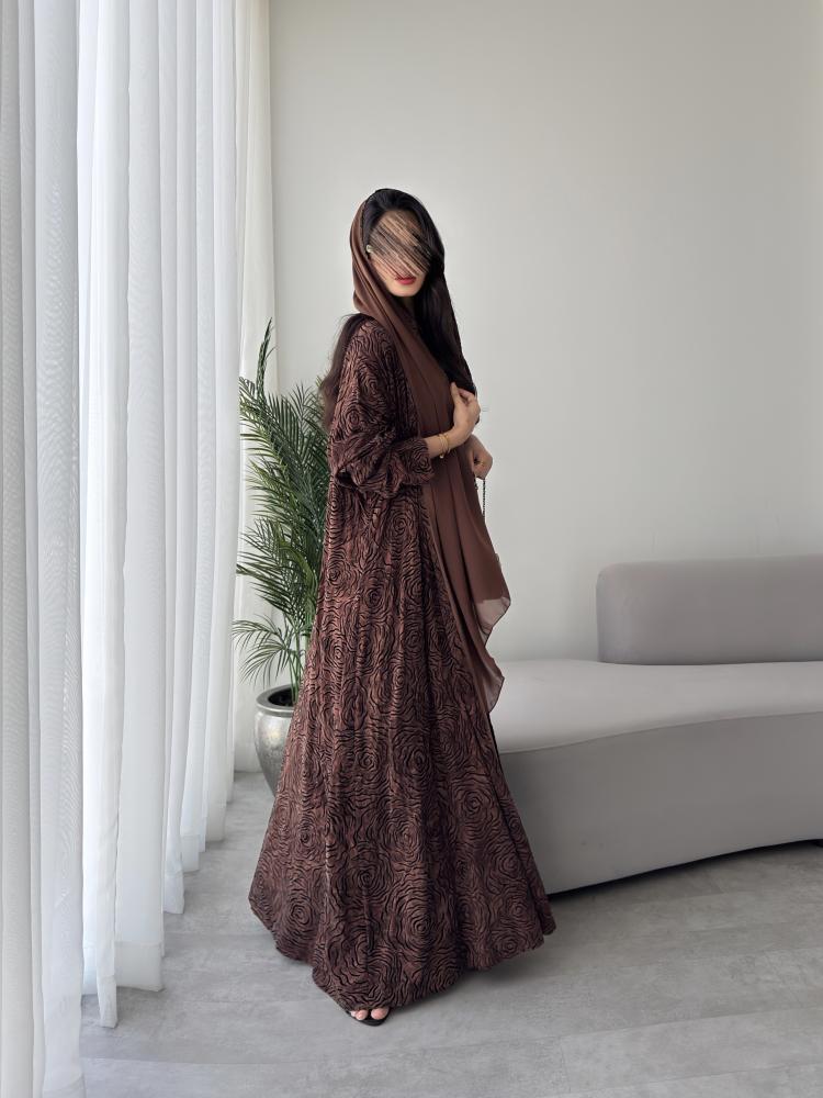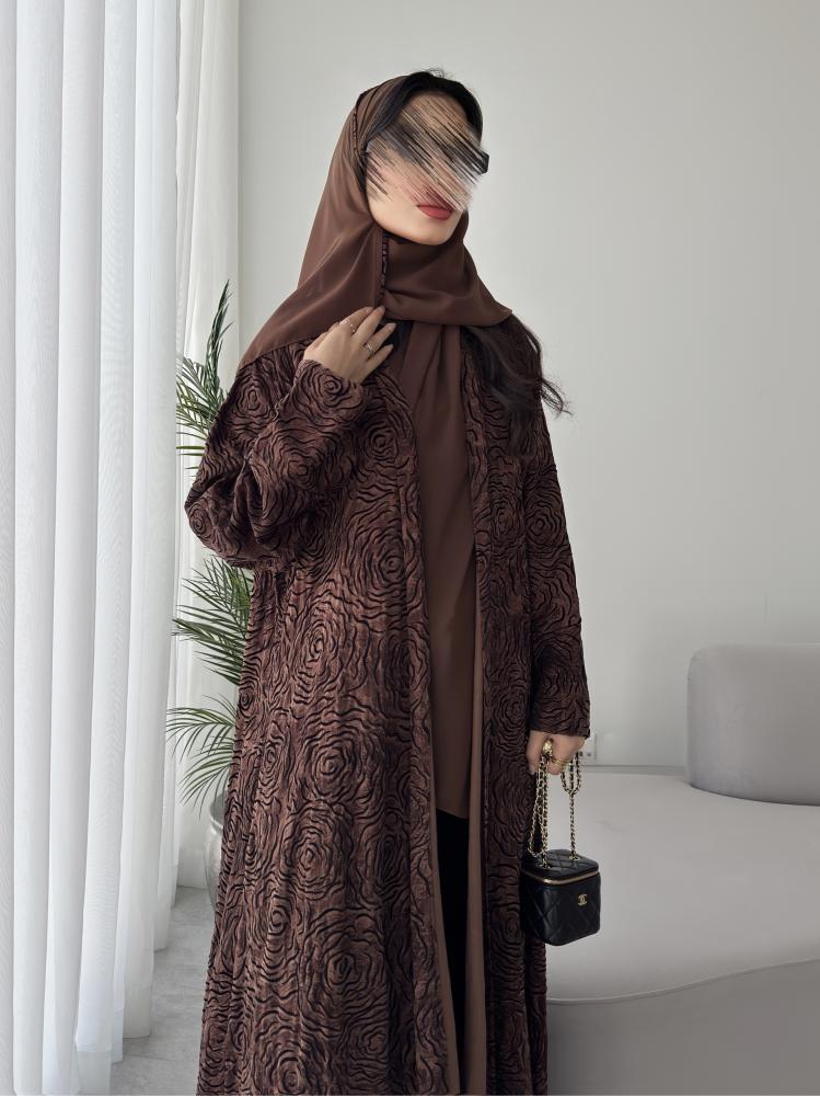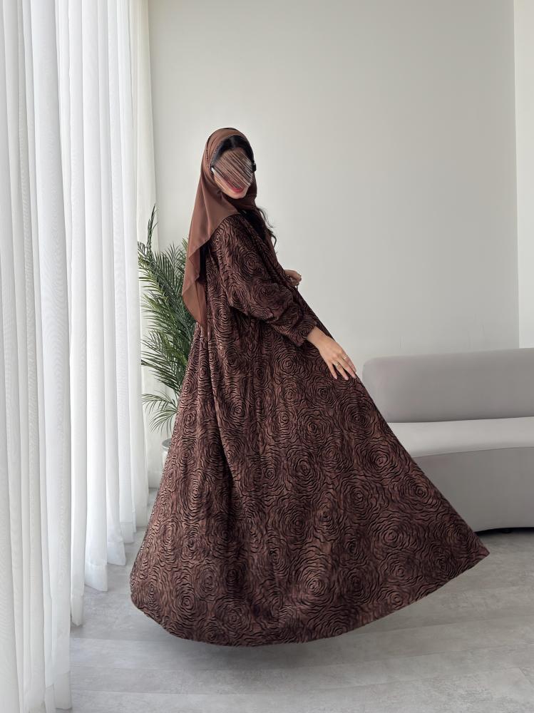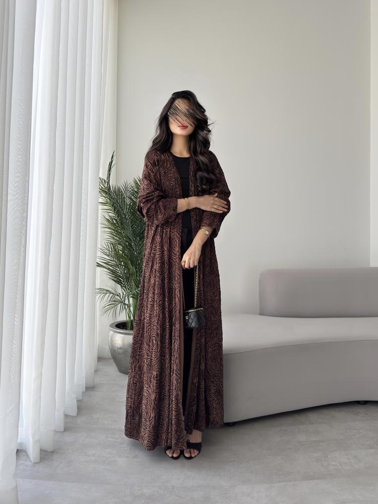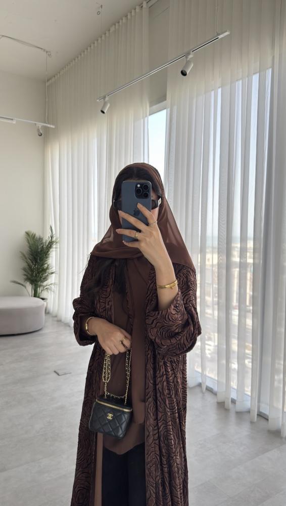 العباية ارضيتها ( الخلفية البنية ) خامته كوبرو طبيعي، الكوبرو هو احد الخيوط الطبيعية التي يتم استخراجها من نبات القطن الطبيعي ، هذا الابتكار حاصل على شهادة براءة اختراع في افضل مصانع تركيا، ملمس الكوبرو يشبه الحرير المغسول في النعومة ولكنه ليس حرير ويعتبر ارقى وأغلى من الحرير نفسه، اما بالنسبة لرسمة الورود السوادء على العباية هي مصنوعة من اغلى انواع الفليفت ( قطيفة فاخرة حتى هي مصنوعة من خيط طبيعي ) ، وهذا يعني ان ملمس الورود السوداء هو قطيفة فاخرة وهذا ما يعطيها الانطباع الشتوي المميز جدا ، نود التنويه الى ان هذه العباية يمكن لبسها حتى في مواسم غير الشتاء ، لان الملمس والشكل شتوي ولكن الاستخدام على مدار السنة🤎.